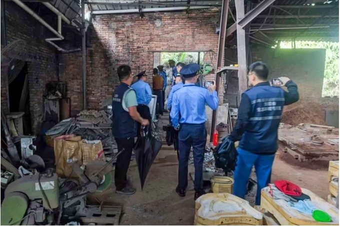 本次行動主要對重點信訪區域內企業的污染防治設施運維情況以及是否存在“散亂污”企業偷排廢氣廢水開展核查。本次檢查中發現,某塑膠有限公司主要從事塑料回收,但其車間內擅自增設洗塑工序且未配套廢水收集處置設施。執法人員現場檢查時該企業未生產,已要求該企業在未辦理相關環保手續和未配套廢水污染防治設施前不得擅自將洗塑工序投入生產。在某臨近林地的鐵皮房內,執法人員發現設有焚燒爐及大量塑料廢品,存在較大環境安全和消防安全隱患。執法人員已要求相關負責人現場拆除焚燒設備。
