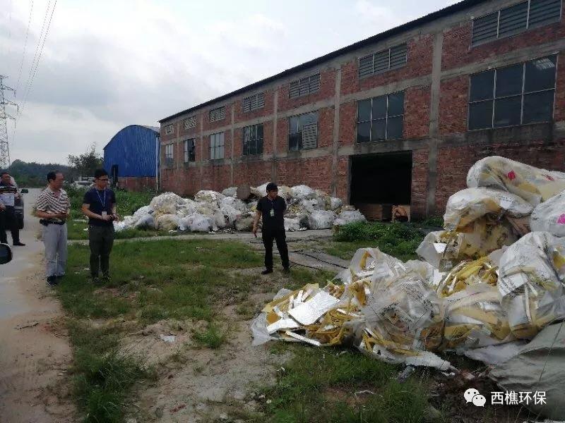 2019年4月6日,南海區西樵鎮環保辦工作人員在進行日常巡查中發現,在西岸生活污水處理廠附近空地有兩堆以保溫材料廢料為主的工業固體廢物,在翻查中發現,該廢物中有兩張寫著“鶴山**”的標簽。